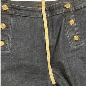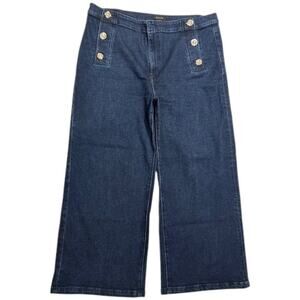 ANN TAYLOR Dark Wash Wide Leg Stretch Sailor Jeans Cropped Fisherman Patch Pockets Size 16