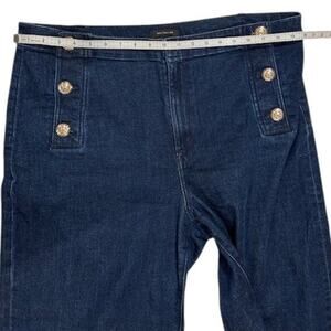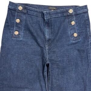 ANN TAYLOR Dark Wash Wide Leg Stretch Sailor Jeans Fisherman Patch Pockets 16