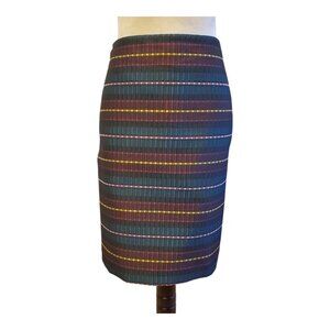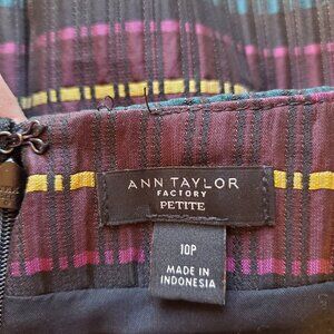 ANN TAYLOR FACTORY SZ 10P Petite Striped Plaid Multi-color Pencil Skirt