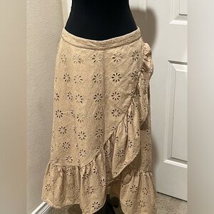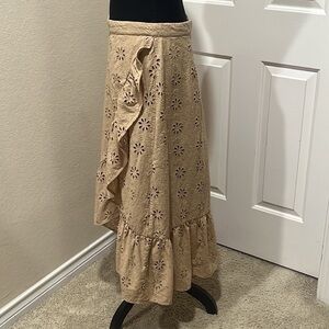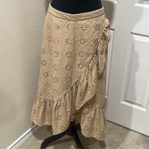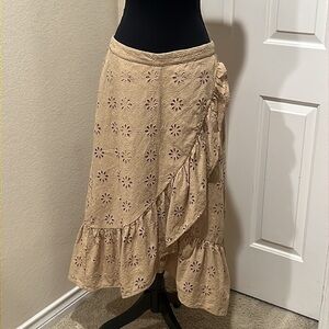 ANN TAYLOR FLORAL EYELET FLOUNCE WRAP MIDI SKIRT SIZE10.