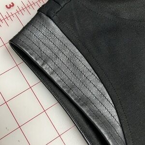 Faux leather shoulder accents with stitching detail