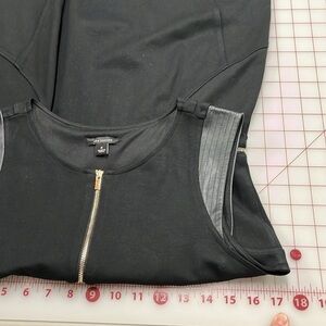 ANN TAYLOR Faux Leather Detail Gold Zip Career/Minimalist Black Sheath Dress 6