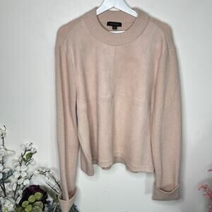 ANN TAYLOR Faux Suede Mixed Media Sweater Blush Pink Cream {V8}