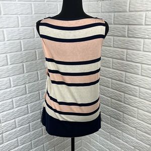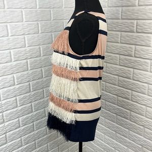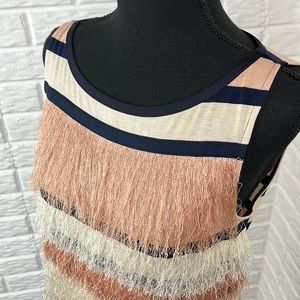 ANN TAYLOR Fringe sleeveless stripe blouse Navy, Peach, and cream size M