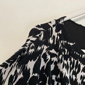 ANN TAYLOR Graphic Sonnet Print Tie Waist Dress Black White Geo Sheath NO BELT M