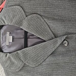 Perfect fit in excellent condition Ann Taylor gray pinstripe work career 3 button blazer. Size 4, This has a heavier stiff like tailored feel to it.