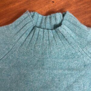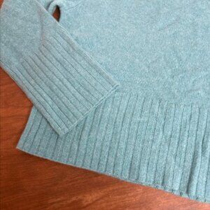 ANN TAYLOR LOFT 100% CASHMERE MOCK NECK SWEATER CRISP TEAL HEATHER $129 M