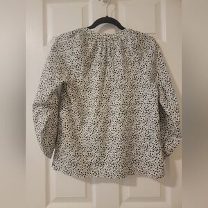 Ladies Ann Taylor 3/4 sleeve top. It is pullover with a string like tie. At the end of the sleeves is elastic. Chest measurement across the front is 19-1/2" The top is in great condition. Please see all pictures.