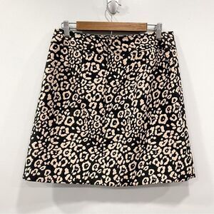 ANN TAYLOR LOFT 8 Brown Tan Animal Print Lined Mini A-Line Skirt Pockets Party Office Siren