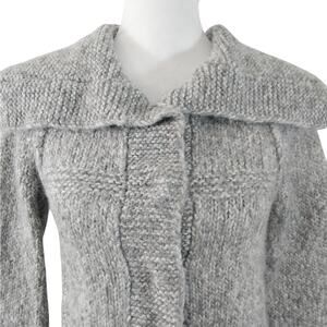 From Ann Taylor LIFT comes this adorably bulky knit sweater, in marled shades of gray! Contrast knit stitches, wide collar, 4 hidden big snap front! Absolutely too sweet! An Alpaca, wool plus blend! Size XS, Excellent! Superb EUC Condition! **ABSOLUTELY GUARANTEED CONDITION: EUC MINTY-EXCELLENT TO LIKE-NEW, by Lily @HauteClub!***