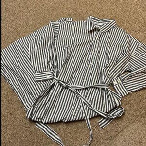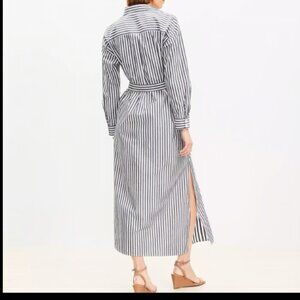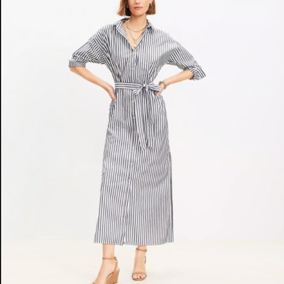 ANN TAYLOR LOFT BELTED PETITE POCKET SHIRTDRESS STRIPED NWOT $100 M P