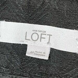 The product is a pair of Ann Taylor Loft black scalloped hem textured shorts in size 4P, designed for a preppy goth capsule beach aesthetic. Made from a cotton blend, these shorts feature a flat front and a mid-rise fit. The scalloped hem adds a unique accent to the chino style shorts, making them suitable for various occasions such as travel, activewear, parties, or casual wear. Perfect for a hipster, American, hippie, nautical, equestrian, bohemian, classic, Aloha, city, or gothic vibe.