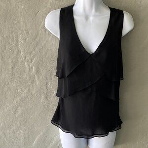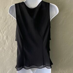 ANN TAYLOR LOFT BLACK SHEER LAYERED RUFFLE SLEEVELESS BLOUSE'