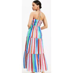 ANN TAYLOR LOFT Beach Halter Maxi Swimsuit Coverup Pocket Dress Candy Stripe NWT