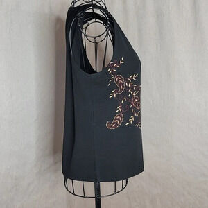 ANN TAYLOR LOFT Black Paisley Floral Embroidered Sleeveless Blouse Size MP