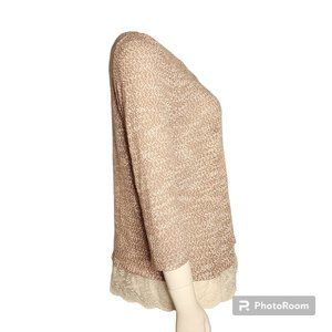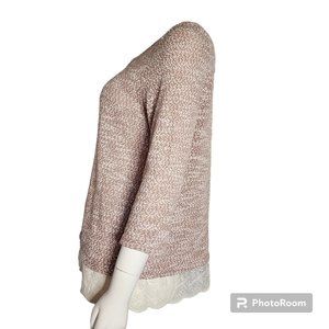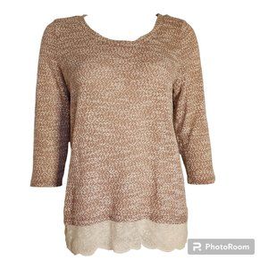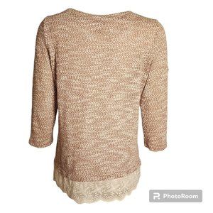 ANN TAYLOR LOFT Brown White 3/4 Sleeve Lace Detail Sweater Womens Size L Large