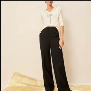 ANN TAYLOR LOFT CURVY CLEAN WIDE LEG TUXEDO BLACK TROUSER PANT NEW $129 6 Curvy