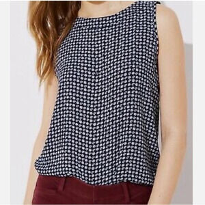 ANN TAYLOR LOFT Floral Piped Mixed Media Shell Tank Top