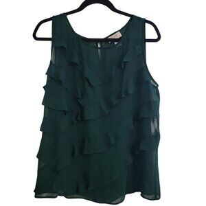 ANN TAYLOR | LOFT | Forrest Green Sleeveless Ribbon Blouse