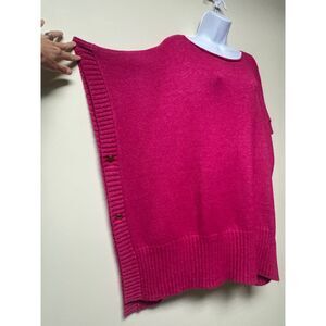 Gold button details on the sides. Beautiful, bright fuchsia color. Rolled neck with designated armholes. Very soft.