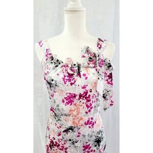 ANN TAYLOR LOFT Gray Floral Sheath Silky Dress Sleeveless Office Party Women's 8