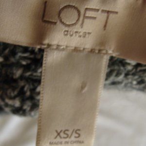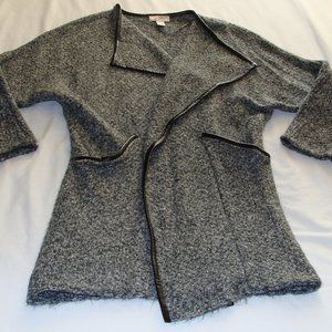 ANN TAYLOR LOFT Gray Marled Faux LEATHER Trim SWEATER JACKET Cardigan Sz XS/S