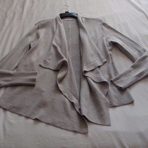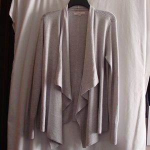 ANN TAYLOR LOFT Icy Silver Gray Long Sleeve WOOL Blend Open DRAPED CARDIGAN Sz M
