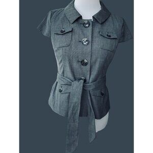 ANN TAYLOR LOFT LADIES PETITE LINED GRAY TWEED BUTTON UP BELTED SS JACKET NWT 4P