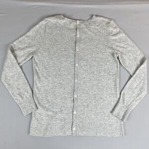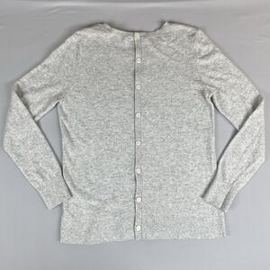 ANN TAYLOR LOFT Long Sleeve Button Back Sweater Womens Med Light Grey Academia.