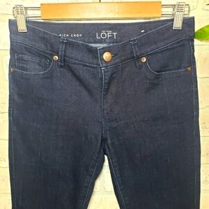 ANN TAYLOR LOFT Modern Kick Crop Size 26/2P. The jeans are low-rise with 3 front pockets, belt loops and a button and zipper closure, there are also 2 back pockets as well, nice darn denim color and great stretch. Excellent condition, no holes or rips.