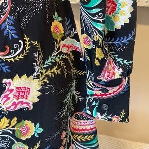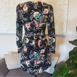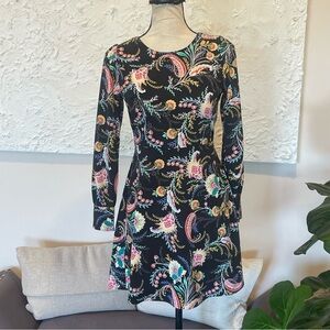 ANN TAYLOR LOFT Multicolor Black Pink Turquoise Long Sleeve Floral Dress Sz 00P