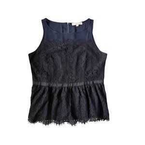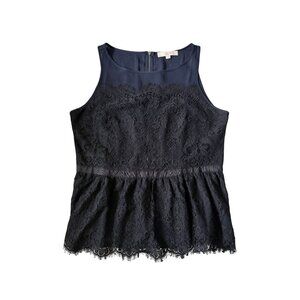 ANN TAYLOR LOFT Navy Black Lace Peplum Tank Top Size 12
