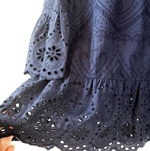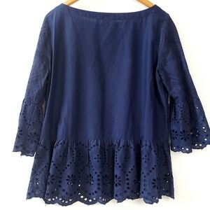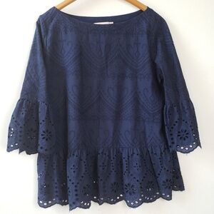 ANN TAYLOR LOFT Navy Eyelet Peplum Blouse Top Medium.