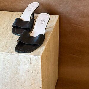 ANN TAYLOR LOFT OPEN TOE KITTEN HEELS IN BLACK