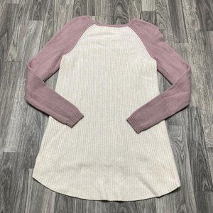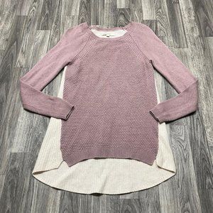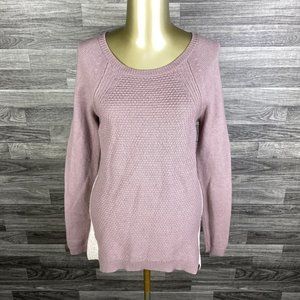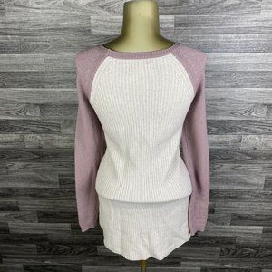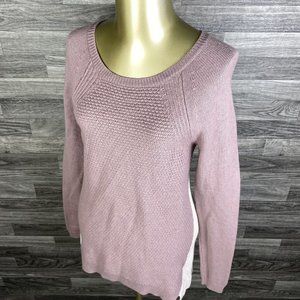 ANN TAYLOR LOFT Round Neck Cream/Mauve Merino Wool Blend Sweater Women's Size S