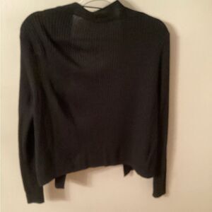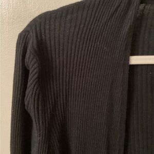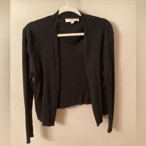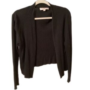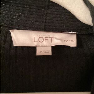 ANN TAYLOR LOFT SIZE LARGE PETITE BLACK COTTON SILK RIBBED CARDIGAN SWEATER