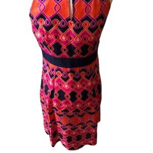 ANN TAYLOR LOFT SLEEVELESS NAVY/PINK/ORANGE PRINT HALTER DRESS 4-EUC