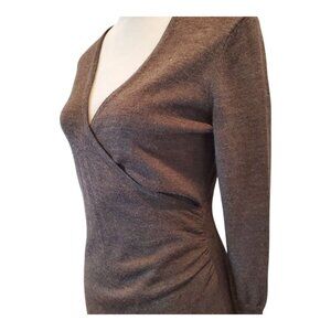 ANN TAYLOR LOFT SZ MP Midi Faux Wrap Wool blend Sweater Dress in Brown