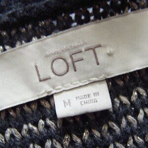 ANN TAYLOR LOFT Silver/Gray STRIPE Long Sleeve WOOL Blend CARDIGAN Sweater Sz M