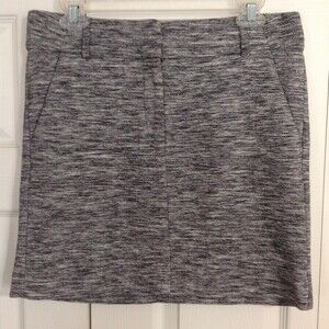 Size 8 Ann Taylor Loft gray heather cotton blend mini skirt. This fabulous skirt has a lot of stretch and can be dressed up or dressed down. Two pockets in front and two pockets in back.