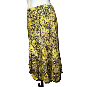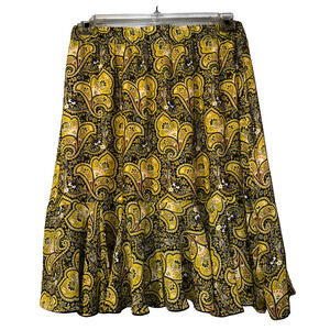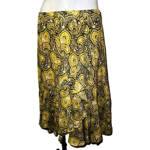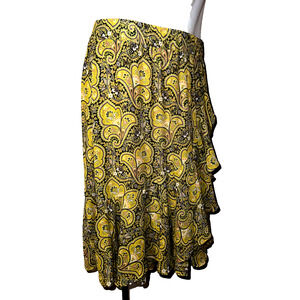 ANN TAYLOR LOFT Skirt Size S Yellow Paisley Faux Ruffle Wrap Boho Gypsy Artsy