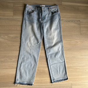 ANN TAYLOR LOFT WOMEN'S LIGHT WASH DISTRESSED STRAIGHT CROP BLUE JEANS SIZE 26/2