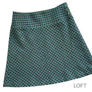 ANN TAYLOR LOFT WOOL BLEND TWEED SKIRT LINED GREEN GRAPHIC DOT PATTERN | SIZE 6