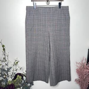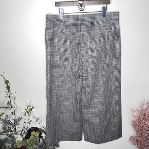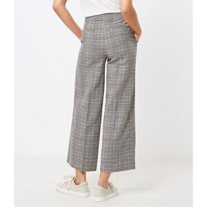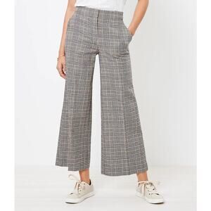 ANN TAYLOR LOFT Wide Leg Linen Blend Crop Pants in Plaid Black Multi {X2}