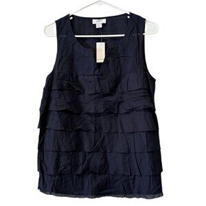 ANN TAYLOR LOFT Women Tiered Blue Ruffle Front Tank Top Sleeveless Small NWT