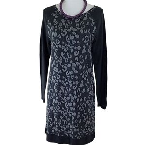 100% Cotton Gray Print Long Sleeve Sheath Career Wear Dress. Great Condition. Gently pre-owned. Bust--38" Hips--40" Total length--37" X--112