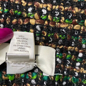 Ann Taylor Loft cropped tweed jacket blazer with gorgeous threads of green sewn into the brown tweed pattern.