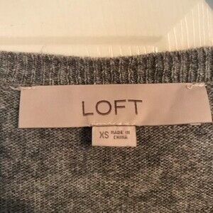 Size x-small gray Ann Taylor Loft crewneck sweater with floral pattern. Wool blend (26% Wool), is soft and cozy. Long length is flattering.