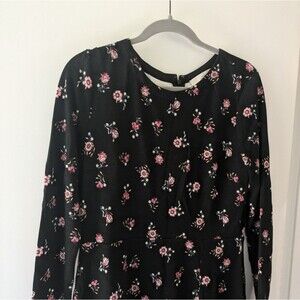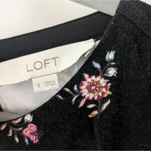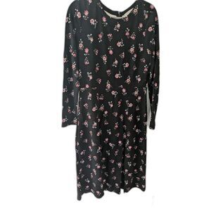 ANN TAYLOR LOFT~Black Size 8 FLORAL Long Sleeve KNIT Midi DRESS~