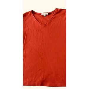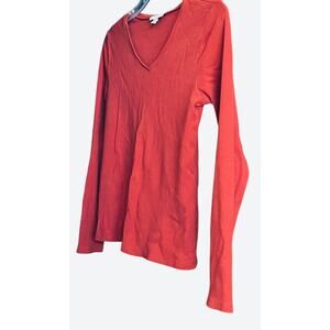 ANN TAYLOR LONG SLEEVE ROUND NECK T-SHIRT TOP, WOMENS, M, SOLID BURNT ORANGE